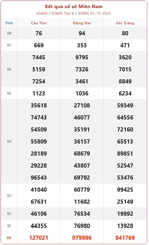 1.Dự Đoán Lô Các Tỉnh Miền Nam Đặc Biệt Ngày 1/10/2025.